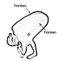 Der Bereich der Nierengegend, die rückwärtigen Lungeräume und die Kreuzgegend unter den letzten hinteren Rippen werden weit.